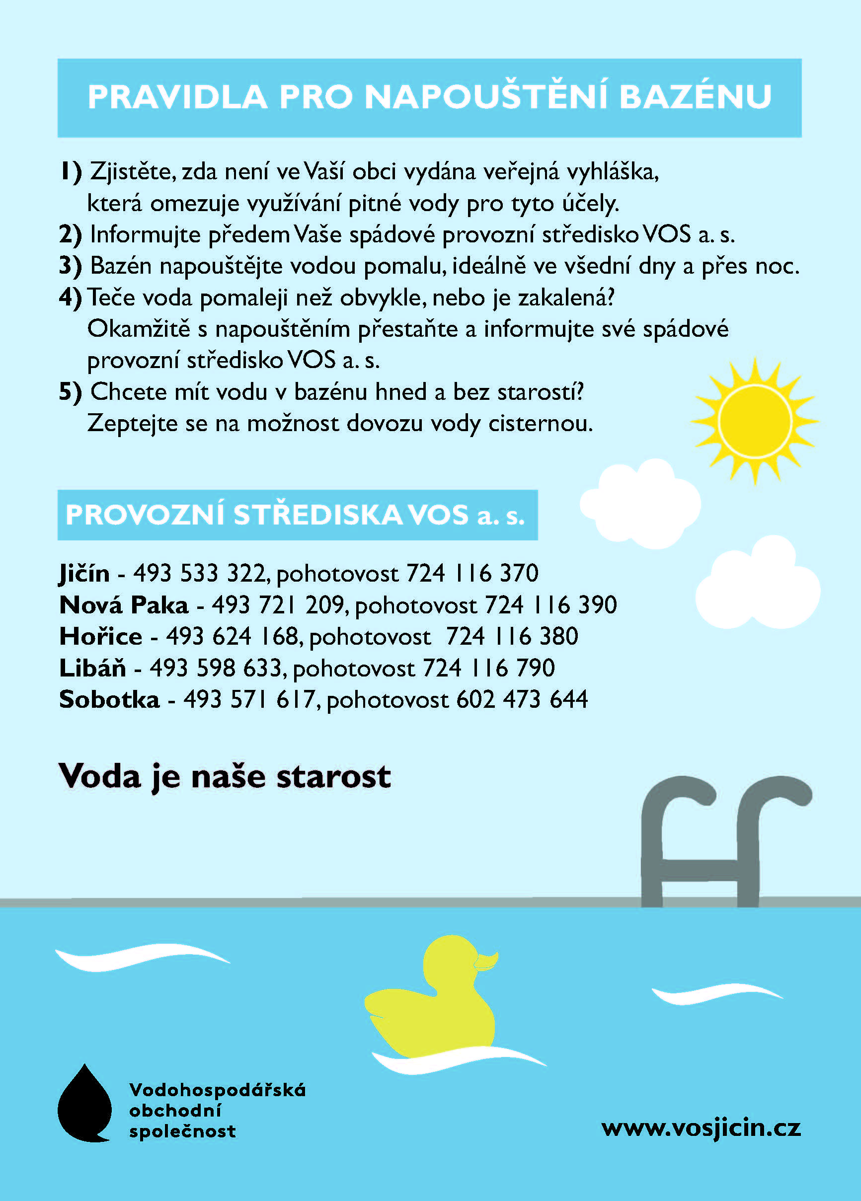 Vodohospodářská a obchodní společnost, a.s. Jičín - Pravidla pro napouštění bazénu.